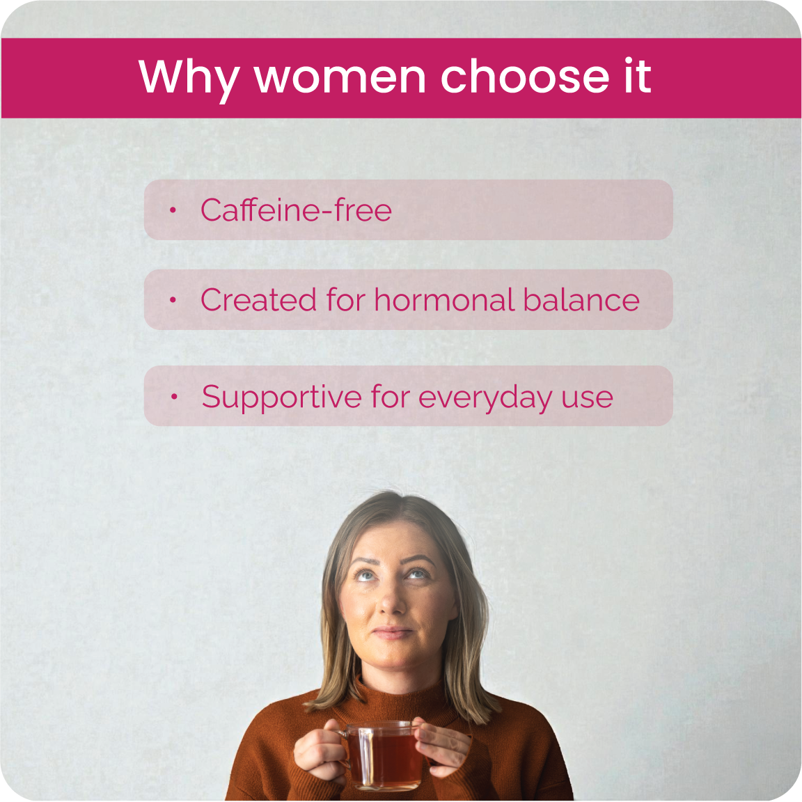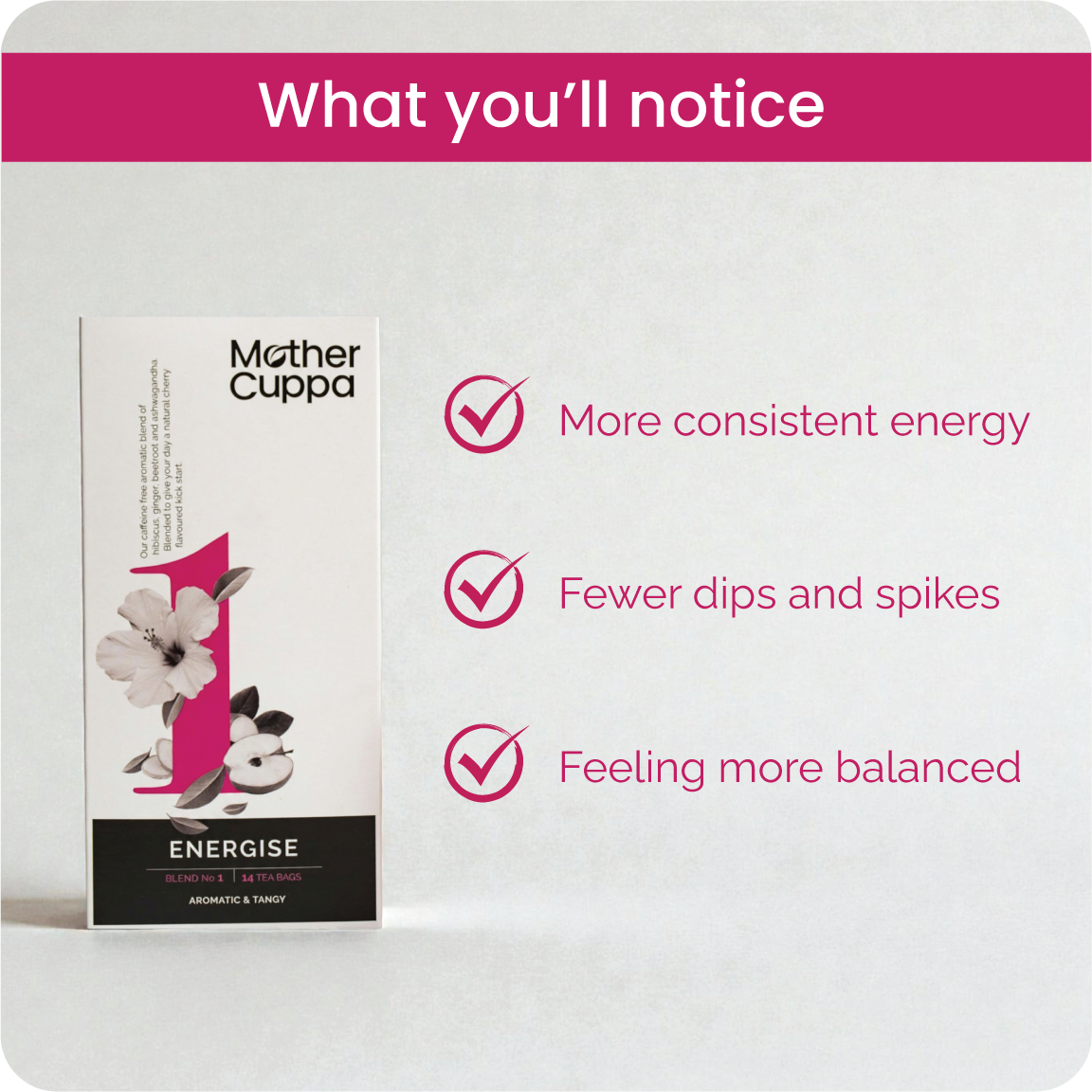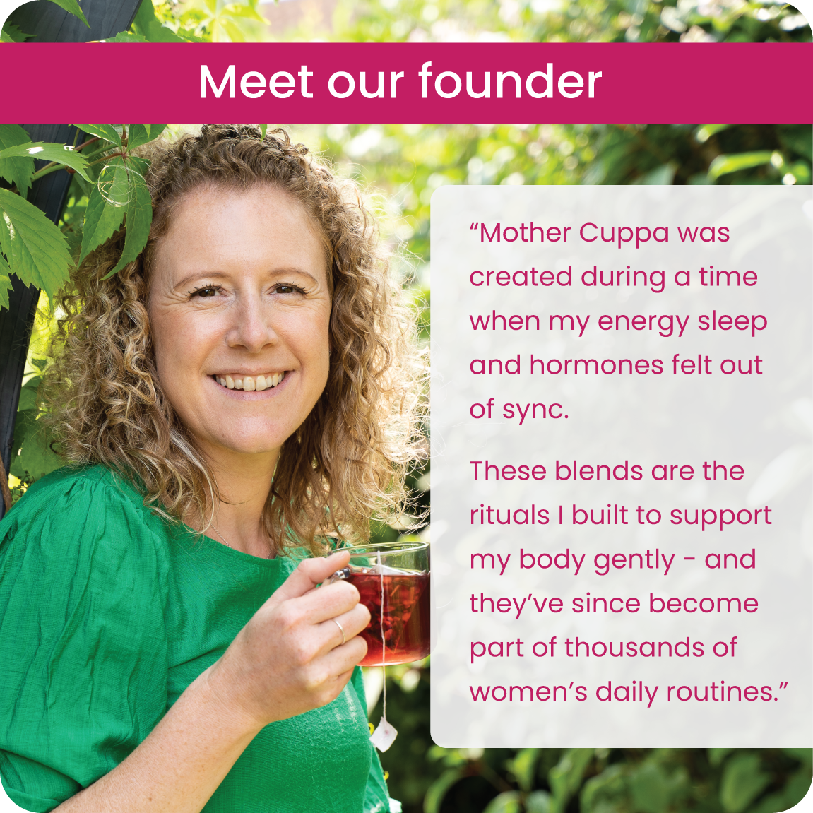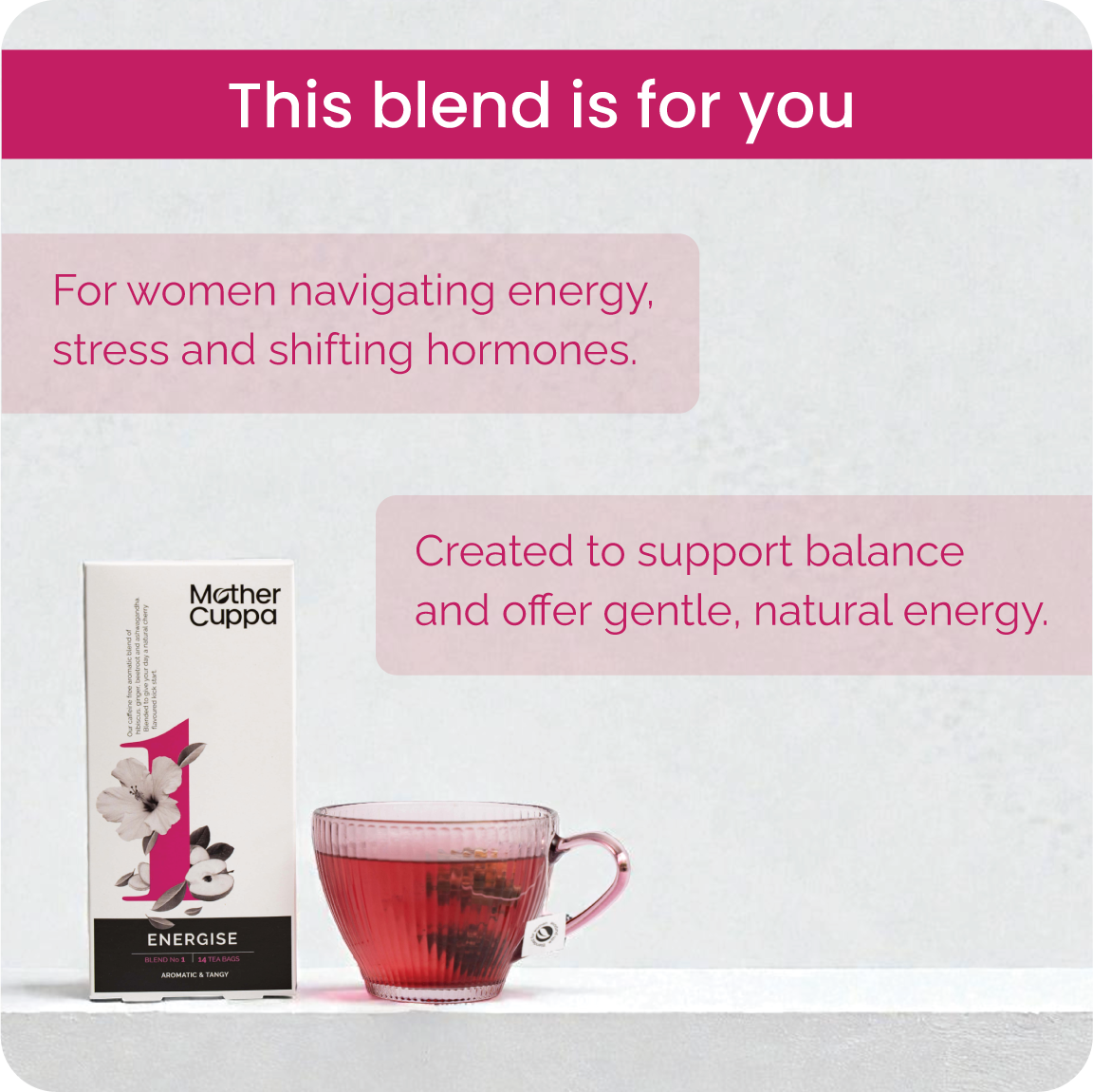 I have never liked anything except bog standard Yorkshire tea despite trying many other teas over the years. I am past menopause now but have a clarity tea everyday- they just taste really lovely no aftertaste at all and they smell ‘real’ as in you can smell the ingredients! I am converted!😍 i am going to try the relax blend next - I also love my free gift! Thank you !