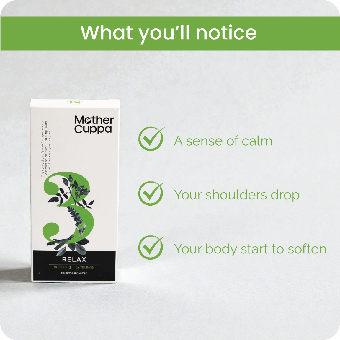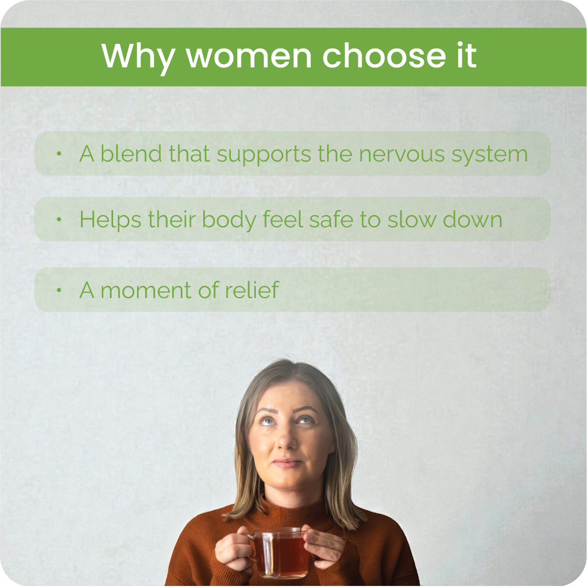 Relaxing herbal tea for women provides daily relaxation. Our Relax Tea is a blend of potent ingredients, makes it our most effective option for bringing calm and relaxation to your busy life. It can also assist with sleep and anxiety, and features natural flavorings, zero caffeine, and zero calories.